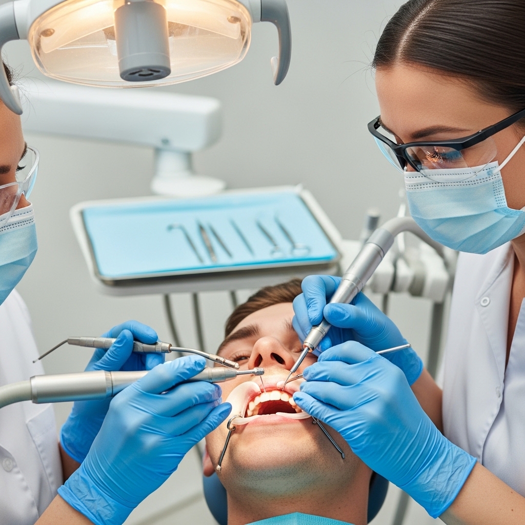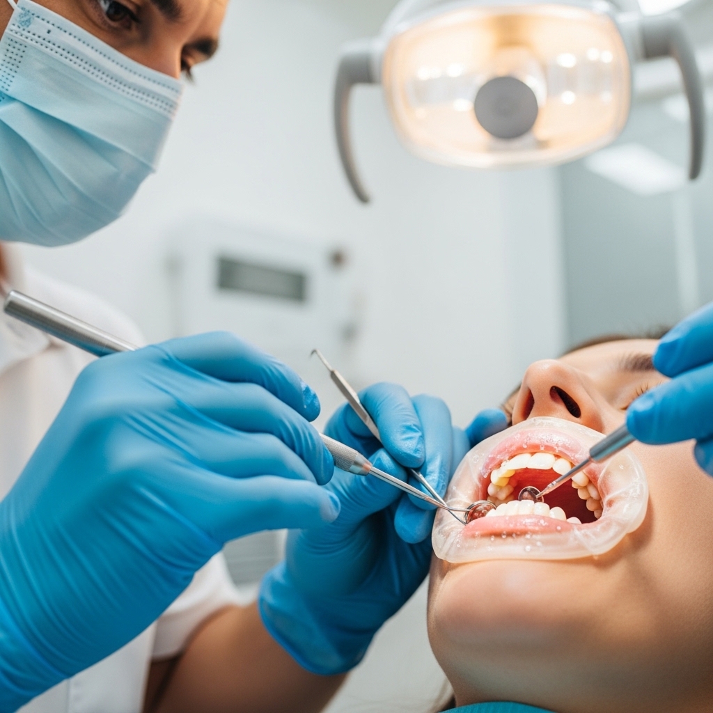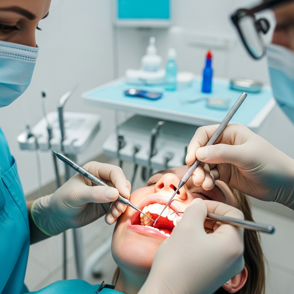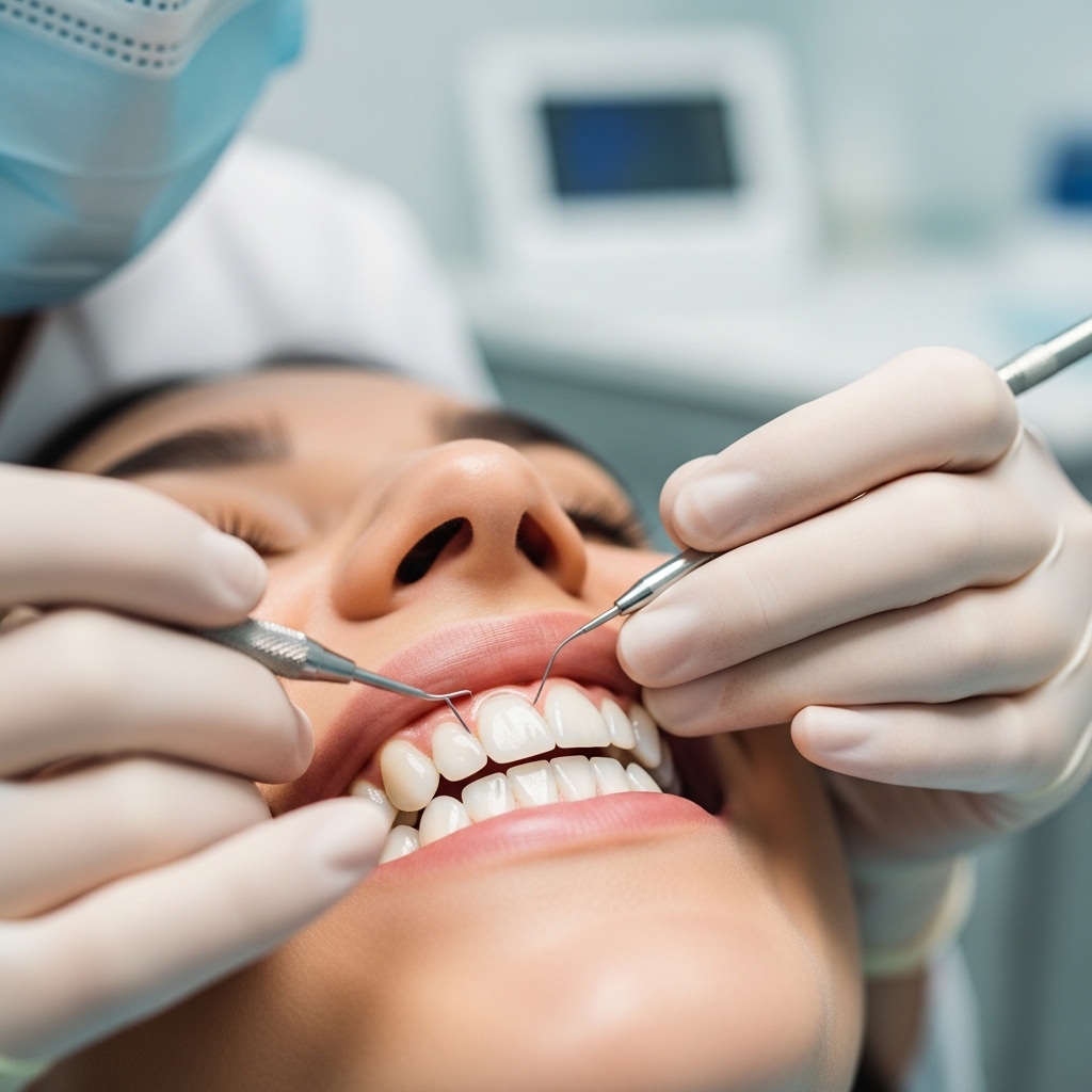 Professional teeth cleaning removes plaque, tartar, and stains. Keeps gums healthy and prevents cavities.